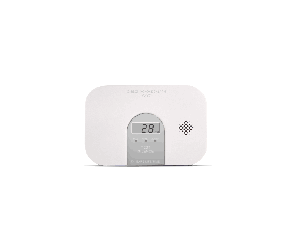 CA107 oppfyller den nye skjerpede standarden for Karbonmonoksidvarslere, EN 50291-1:2018, og har 10 års levetid. Reagerer raskt ved skadelige konsentrasjoner av karbonmonoksid. LCD-display viser aktuelt CO-nivå. 48 timers varslingsminne. Enkel pause- og testfunksjon. Medfølgende batteri holder opp til 3 år. Indikerer når batteriet er tomt og varsleren skal byttes ut.