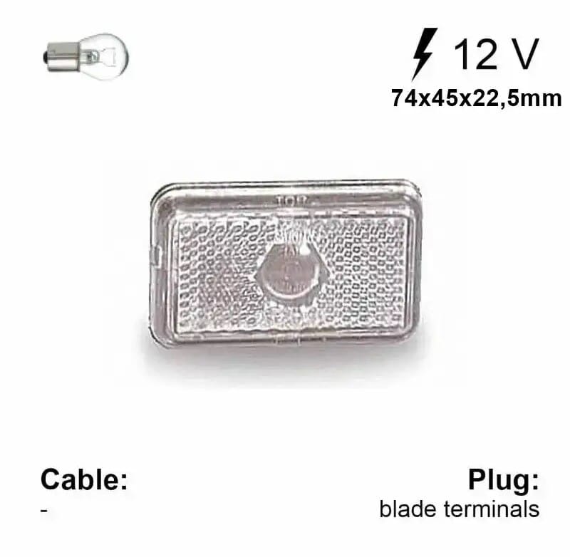 Markeringslygte hvid Jokon 130 PLR 12V Dimensioner (L x H x B): 74x45x26 mm Monteringsside: Universal Refleks: Ja Farve: Hvid Lyskilde: Glødepære Lygtetype: Markeringslygte Lygte type nr.: 130 markering Godkendelses nr.: E1 02216353 Volt: 12V