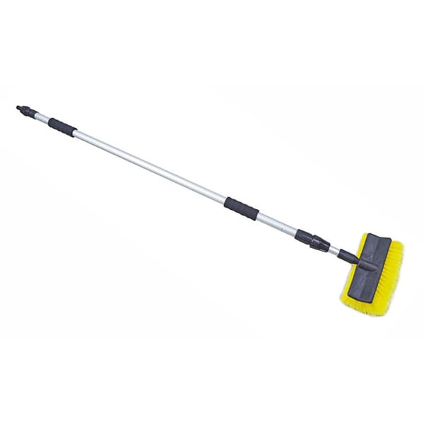 Vaskebørste med hurtigkoblingstil slutning for vannslange som reguleres via på / av-knapp. Lengde: maks 2400 / min 1420 mm. Børstehode: 240 x 75 mm.